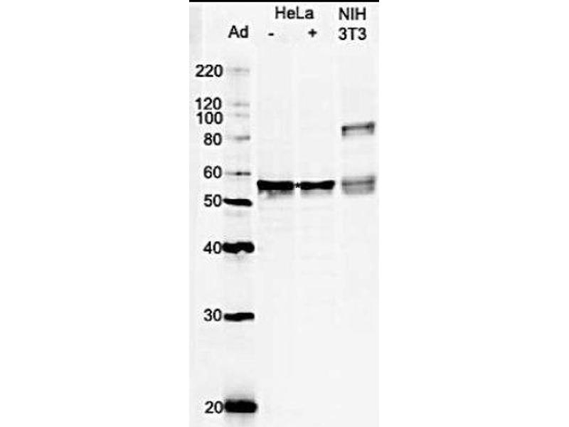 Purification: The antiserum was first adsorbed with GST-agarose column, then the pass-through fraction was affiinity-purified with GST-GRWD1 agarose column.