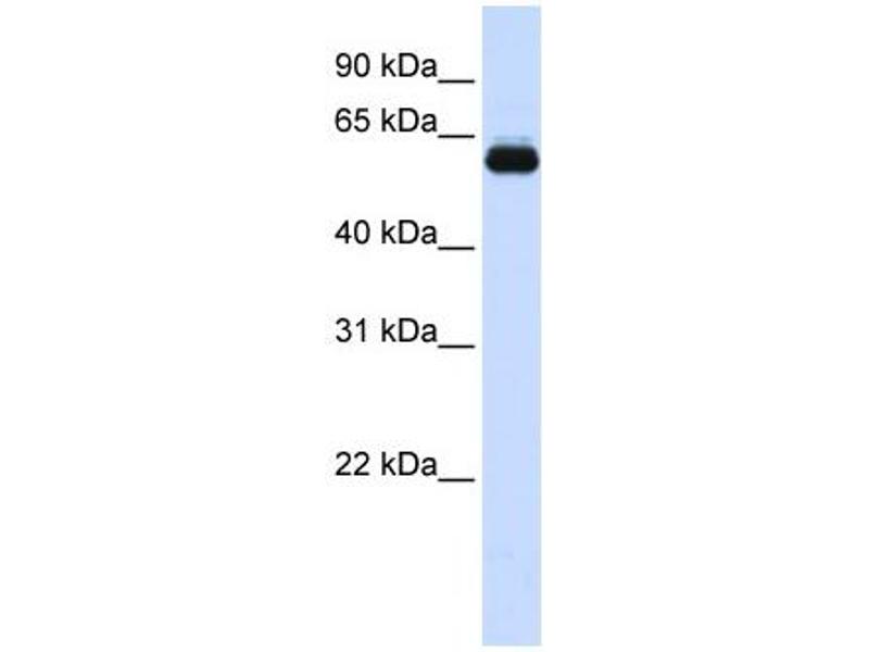 TRIM60 antibody can be used for detection of TRIM60 by ELISA at 1:312500. TRIM60 antibody can be used for detection of TRIM60 by western blot at 1 μg/mL, and HRP conjugated secondary antibody should be diluted 1:50,000 - 100,000.