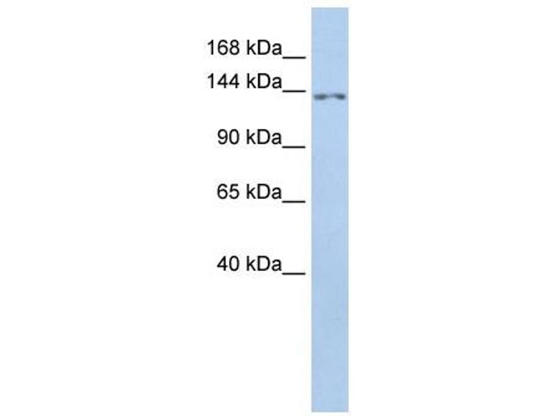 TMEM132B antibody can be used for detection of TMEM132B by ELISA at 1:62500. TMEM132B antibody can be used for detection of TMEM132B by western blot at 1 μg/mL, and HRP conjugated secondary antibody should be diluted 1:50,000 - 100,000.