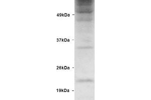 A 1:1000 dilution of ABIN2481446 was sufficient for detection of free ubiquitin in 15 μg of HeLa lysate by ECL immunoblot analysis using Donkey anti-rabbit IgG:HRP as the secondary antibody.
