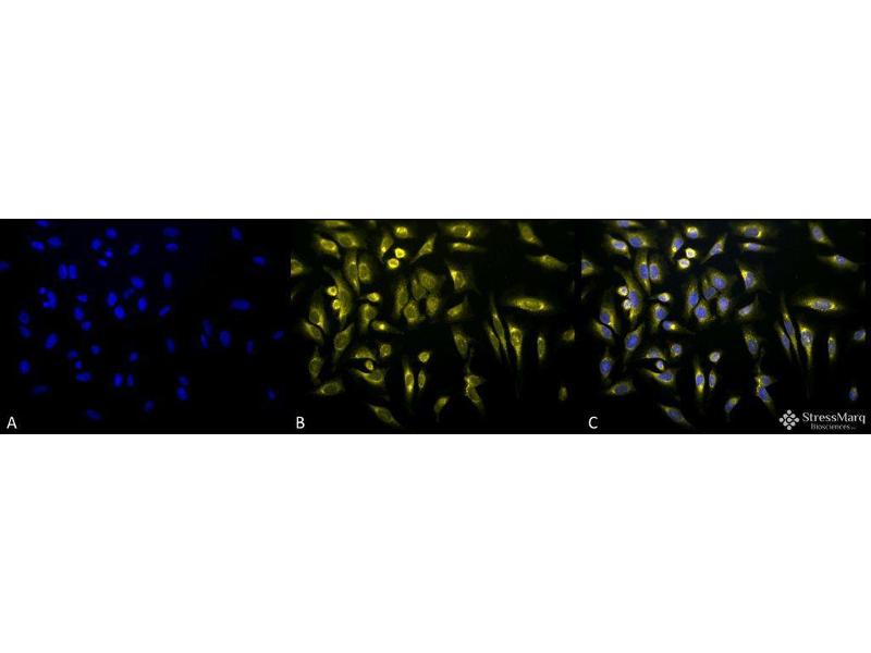 A 1:1000 dilution of ABIN2481797 was sufficient for detection of KDEL-containing proteins in 20 μg of HeLa cell lysate by ECL immunoblot analysis using goat anti-mouse IgG as the secondary.