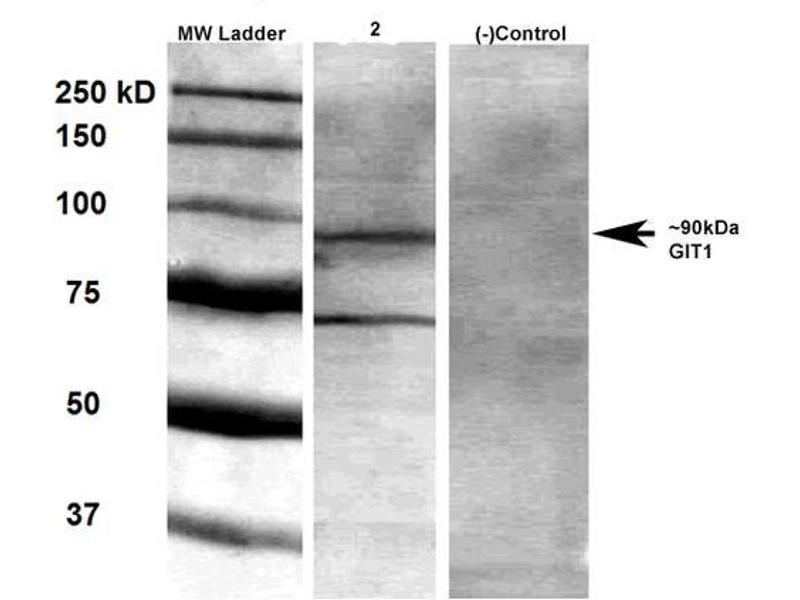 - Detects ~90 kDa. Does not cross-react with GIT2.