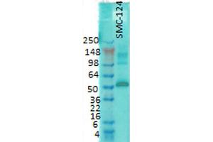- Detects ~50-60 kDa. Recognizes both phosphorylated and non-phosphorylated forms.