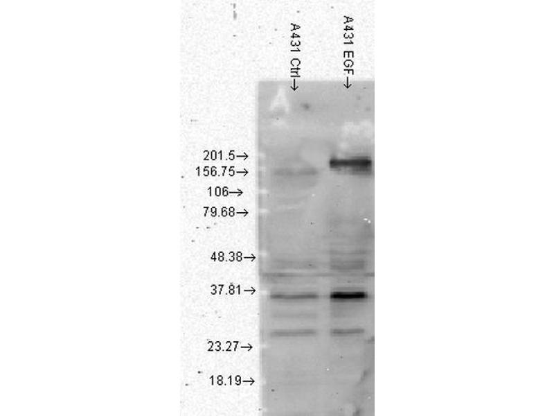 - Reacts with phosphotyrosine, and detects the presence of phosphotyrosine in both un-stimulated and stimulated cell lysates. Does not cross-react with phosphoserine or phosphothreonine.