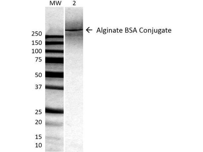 - Binds selectively to a BSA-conjugated alginate, but not to unconjugated BSA.