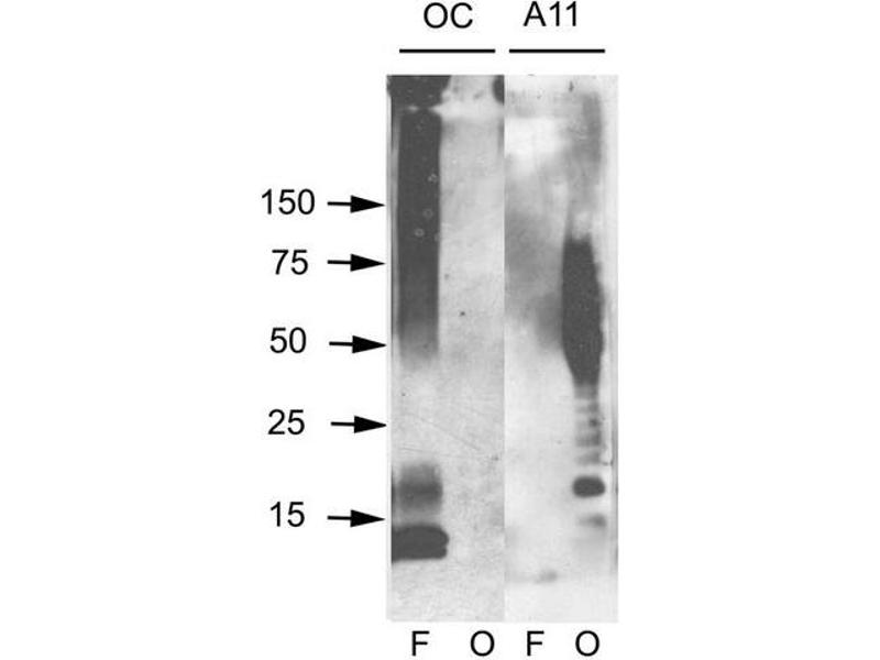 - Recognizes all types of amyloid oligomers. Appears to recog a peptide backbone epitope common to amyloid oligomers, but not found in native proteins, amyloidogenic monomer or mature amyloid fibrils.