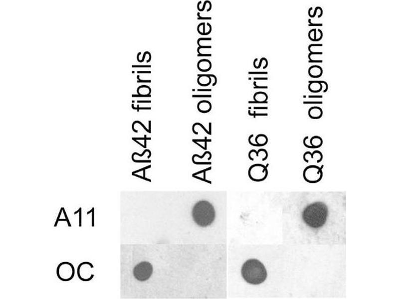 - Recognizes all types of amyloid oligomers. Appears to recog a peptide backbone epitope common to amyloid oligomers, but not found in native proteins, amyloidogenic monomer or mature amyloid fibrils.