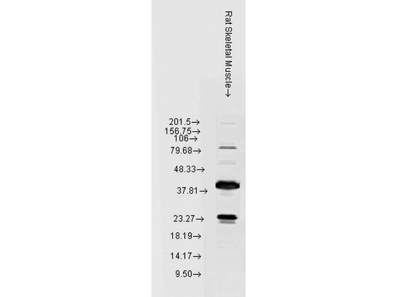 A 1:1000 dilution of ABIN2486746 was sufficient for detection of HSP22 in 10 μg of rat tissue lysate by colorimetric immunoblot analysis using Goat anti-rabbit IgG:HRP as the secondary antibody.