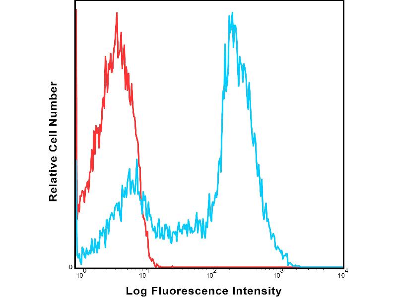 The UCHT2 monoclonal antibody specifically reacts with human CD5, a 67 kda type 1 transmembrane glycoprotein. CD5 is expressed on mature T cells, a subset of B cells, and peripheral blood dendritic cells. B cells that are CD5+ produce mostly IgM polyreactive antibodies. Its ligand is CD72, which is involved in T, B cell proliferation and interaction. The UCT2 antibody also recognizes non-human primate CD5.