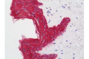 This anti-Cytokeratin 19 antibody is a 小鼠 单克隆 antibody detecting Cytokeratin 19 in WB, IHC, IF 和 IHC (p). Suitable for 人, 大鼠, 犬 和 猴.