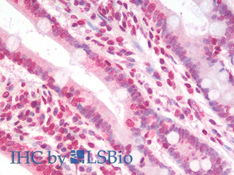 Immunohistochemistry: Paraffin embedded Human Small Intestine. Recommended concentration: 5 μg/mL.