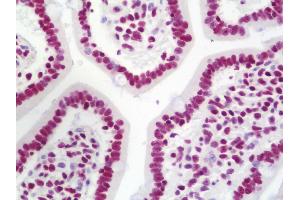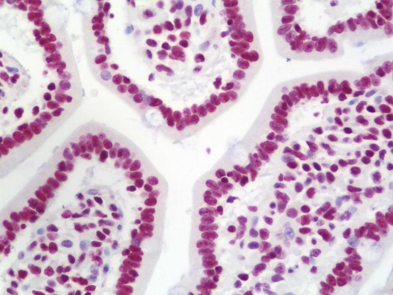 Usage: Immunohistochemistry: Antigen retrieval is recommended. Antigen retrieval with citrate buffer will enhance staining. Likely to work with frozen sections. In some cases, the antibody may be diluted further than indicated. Human controls: Breast Carcinoma, Colon Carcinoma, Laryngeal Squamous Cell Carcinoma, Linitis Plastica Stomach Cancer, Non-Small Cell Lung Cancer, Ovarian Carcinoma, Prostate Carcinoma, Skin Basal Cell Carcinoma, Skin Squamous Cell Carcinoma, Small Cell Lung Cancer, Stomach Adenocarcinoma, Testicular Seminoma. Mouse controls: Squamous Cell Carcinoma.