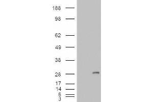 Western Blot: Approx. 25 kDa band observed in Human Adrenal Gland lysates (calculated MW of 25.3 kDa according to NP_002169.1). In transfected HEK293 transiently expressing IGFBP6 a band of approx. 29 kDa is observed. This band is not observed in the non-tr