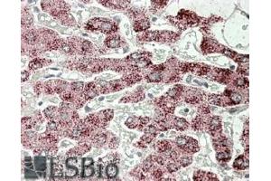 Western Blot: Preliminary experiments gave an approx 50 kDa band in Human Liver lysates after 0.3 μg/mL antibody staining. Please note that currently we cannot find an explanation in the literature for the band we observe given the calculated size of 59.0