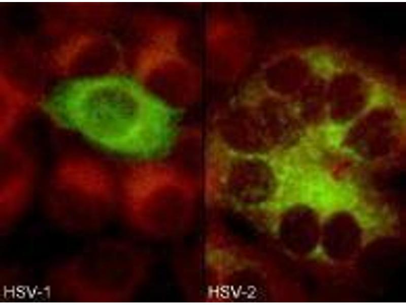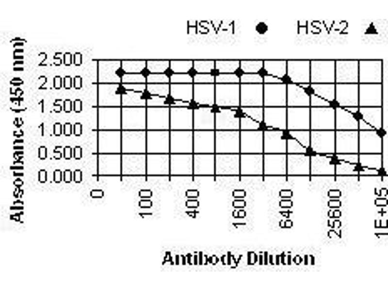 - Immunofluorescence: HSV-1: 1+ at 1:25.600. HSV-2: 1+ at 1:3.200. ELISA: 0.100 at 1:102.400. Western Blotting: >1:80.000