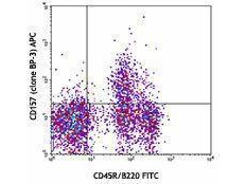 CD157 is an ectoenzyme member of the ADP-ribosyl cyclase family, also known as ADP-ribosyl cyclase 2, BST-1 (bone marrow stromal cell antigen 1), BP-3 antigen. It has a molecular weight between 40 - 46 kD and is a GPI-linked cell membrane glycoprotein which is expressed as a homodimer. CD157 is expressed by macrophages, neutrophils, bone marrow stromal cells, endothelial cells, follicular dendritic cells, and T and B cell progenitors prior to the rearrangement of the antigen receptors. Besides the ectoenzyme activity, it also plays a role in neutrophil migration and adhesion.