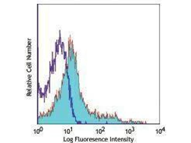 - CD43, also known as Ly-48, Leukosialin, Sialophorin, Leukocyte Sialoglycoprotein, and gp115, is a large single chain of type I transmembrane glycoprotein with abundant O-glycosylation and sialylation sites. Due to variable glycosylation and sialylation, two isoforms of CD43 have been identified. The 115 kD glycoform of CD43 is expressed on most hematopietic cells including T lymphocytes, NK cells, monocytes, granulocytes, platelets, and CD5+ B cells. It is not present on resting B cells and erythrocytes. While the 130 kD glycoform is thought to be activation-associated form primarily expressed on myeloid cells, pre-B cells, and activated T cells. It has been reported that CD43 binds to CD54 and Siglec-1. CD43 plays dual roles in cell adhesion and anti-adhesion, as well as costimulation of T cell activation and survival, and induction of apoptosis of T cells and hematopoietic progenitors. The 1B11 antibody reacts with the activation-associated glycoform of CD43. The epitope recognized by 1B11 is also shared with desialylated CD45RB. This antibody is useful for differentiation of effector CD8 T cells and memory T cells.