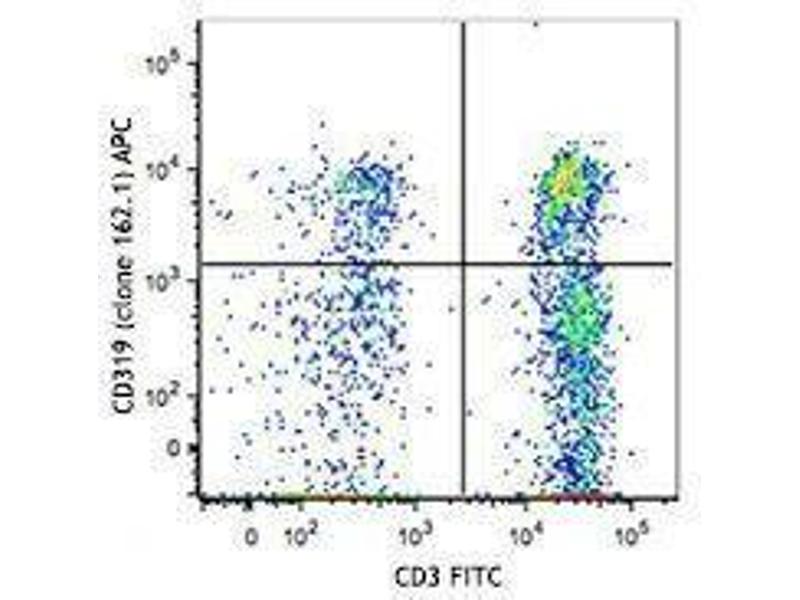 - CD319 is a single-pass type l transmembrane glycoprotein, expressed on NK cells, subsets of mature dendritic cells, activated B cells, and cytotoxic lymphocytes, but not in promyelocytic, B or T cell lines. Expression is highest in the spleen, lymph nodes, and peripheral blood leukocytes, and lowest in bone marrow. Additionally, it is expressed in the small intestine, stomach, appendix, lung, and trachea. CD319 is tyrosine phosphorylated in activated NK cells and is associated with 19 and 39 kD proteins. CD319 has homology with the CD2 family of receptors within the Ig superfamily. Some of the CD2 members stimulate cytotoxicity through the CD319 associated protein.