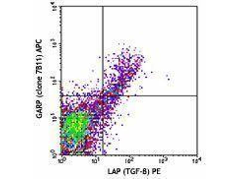 Glycoprotein A Repetitions Predominant (GARP), also known as leucine rich repeat containing 32 (LRC32), is a 80 kD type I membrane glycoprotein with 20 leucine rich repeats in the extracellular portion of the protein. GARP was found on the surface of megakaryocytes, platelets, and activated Tregs (CD4+, CD25+, FoxP3+ cells) and serves as a receptor for latent TGF-β. Recent evidence suggests that GARP may play a role in controlling suppressor function of Tregs. A mutation in GARP has been reported in a large Samaritan kindred with Usher syndrome type 1, an autosomal recessive disease characterized by profound congenital sensorineural deafness, vestibular dysfunction, and progressive visual loss. In addition, it has been found that GARP mRNA is highly amplified in different tumors, which indicates that tumor cells may use GARP to express TGF-β or to capture TGF-β from their surroundings, resulting in local suppression of anti-tumor immune responses or the induction of Tregs.