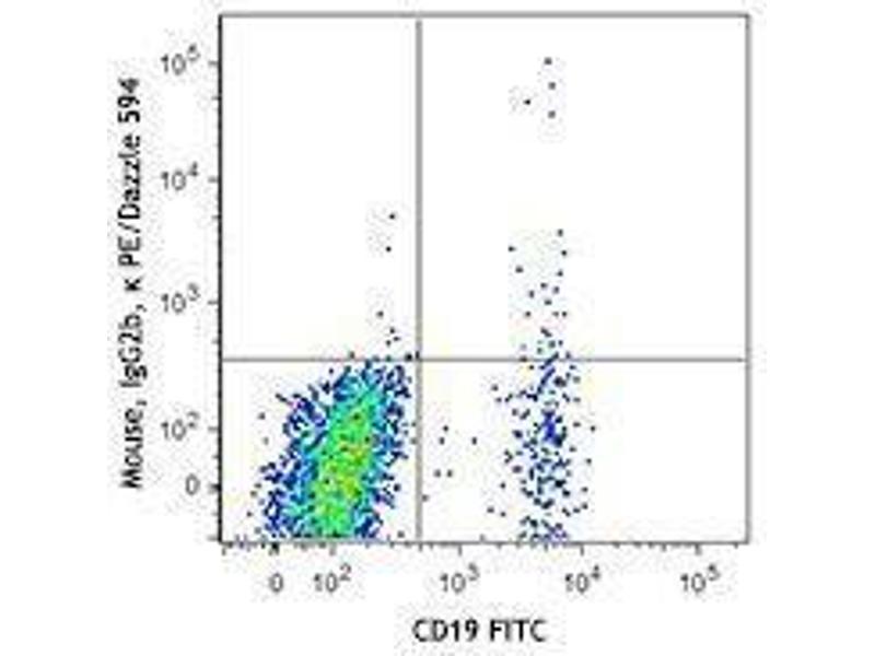 The antibody was purified by affinity chromatography and conjugated with PE/Dazzle™ 594 under optimal conditions. The solution is free of unconjugated PE/Dazzle™ 594 and unconjugated antibody.