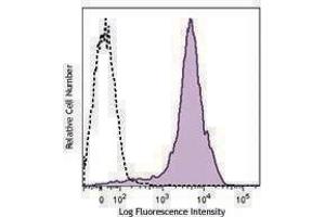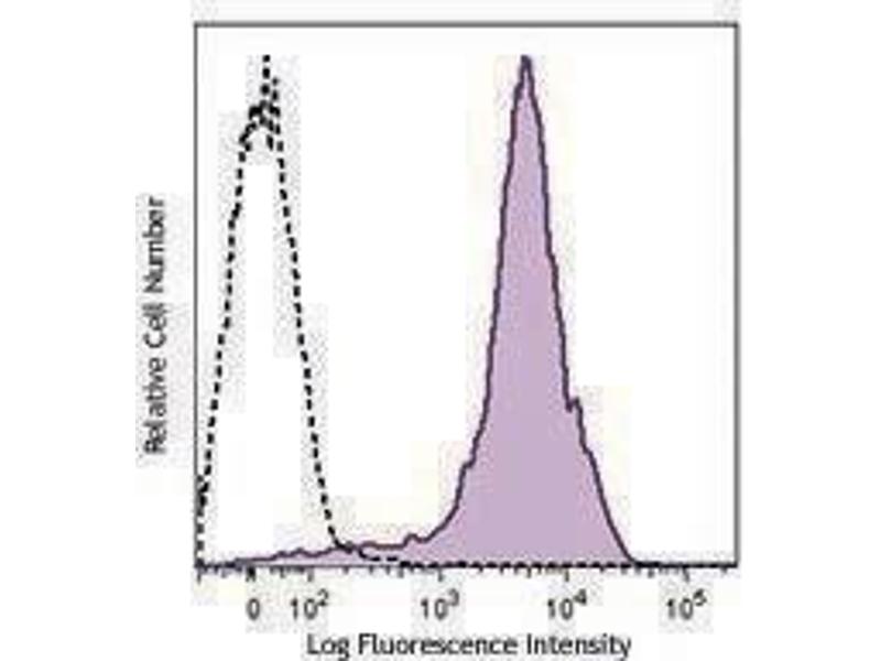 CD44 is a 80-95 kD glycoprotein also known as Hermes, Pgp1, H-CAM, or HUTCH. It is expressed on all leukocytes, endothelial cells, hepatocytes, and mesenchymal cells. As B and T cells become activated or progress to the memory stage, CD44 expression increases from low or mid levels to high levels. Thus, CD44 has been reported to be a valuable marker for memory cell subsets. High CD44 expression on Treg cells has been associated with potent suppressive function via high production of IL-10. CD44 is an adhesion molecule involved in leukocyte attachment to and rolling on endothelial cells, homing to peripheral lymphoid organs and to the sites of inflammation, and leukocyte aggregation.