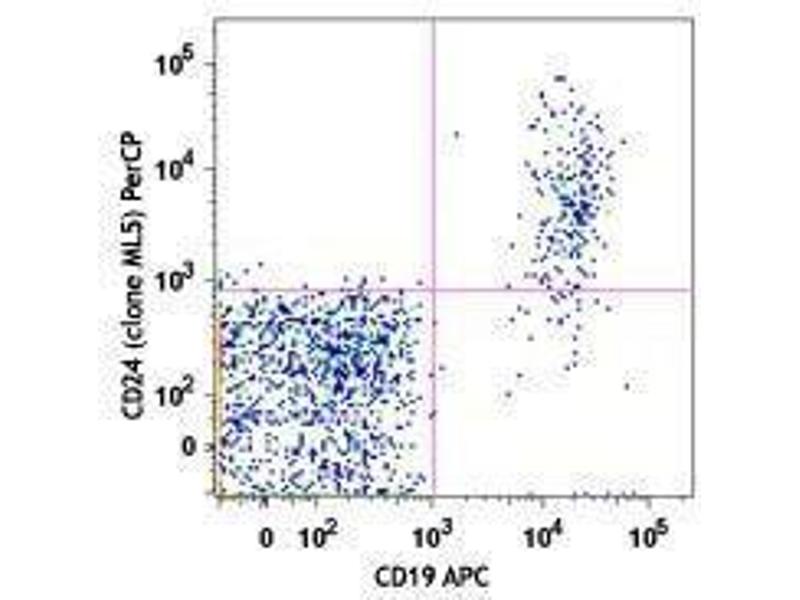 CD24 is a 35-45 kD glycosylphosphatidylinositol (GPI)-linked protein also known as heat stable antigen (HSA), BA-1, Ly-52, and nectadrin. It is expressed on the surface of B cells (but not plasma cells), granulocytes, follicular dendritic cells, and epithelial cells. CD24 may play a role in the regulation of B-cell proliferation and maturation. CD24 crosslinking induces a Ca2+ flux in mature B cells. CD24 has been shown to interact with CD62P (P-selectin).