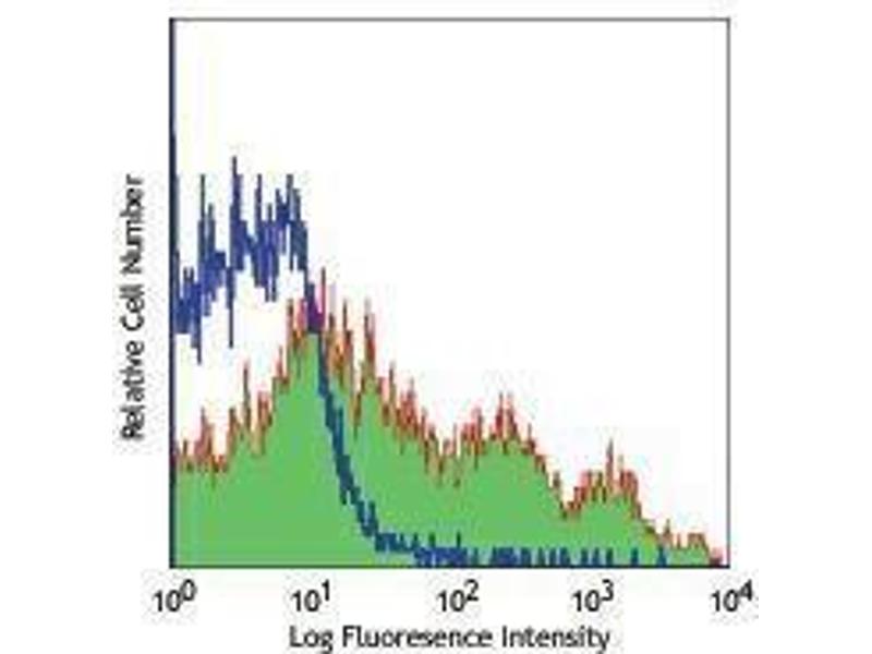 - CD43, also known as Ly-48, Leukosialin, Sialophorin, Leukocyte Sialoglycoprotein, and gp115, is a large single chain of type I transmembrane glycoprotein with abundant O-glycosylation and sialylation sites. Due to variable glycosylation and sialylation, two isoforms of CD43 have been identified. The 115 kD glycoform of CD43 is expressed on most hematopietic cells including T lymphocytes, NK cells, monocytes, granulocytes, platelets, and CD5+ B cells. It is not present on resting B cells and erythrocytes. While the 130 kD glycoform is thought to be activation-associated form primarily expressed on myeloid cells, pre-B cells, and activated T cells. It has been reported that CD43 binds to CD54 and Siglec-1. CD43 plays dual roles in cell adhesion and anti-adhesion, as well as costimulation of T cell activation and survival, and induction of apoptosis of T cells and hematopoietic progenitors. The 1B11 antibody reacts with the activation-associated glycoform of CD43. The epitope recognized by 1B11 is also shared with desialylated CD45RB. This antibody is useful for differentiation of effector CD8 T cells and memory T cells.