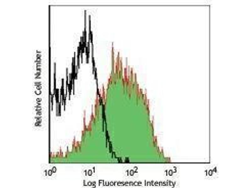 - CD54 is a 85-110 kD type I transmembrane protein also known as ICAM-1. It is expressed on activated endothelial cells, high endothelial venules, T and B cells, monocytes/macrophages, granulocytes, and dendritic cells. The expression of ICAM-1 on the cell surface is potently upregulated by activation, a soluble form of ICAM-1 can be released from the cell surface. CD54 plays a role in cellular adhesion and is involved in inflammation and leukocyte extravasation. CD54 has also been shown to be the major cellular receptor for rhinovirus. ICAM-1 binds to CD11a/CD18 (LFA-1), CD11b/CD18 (Mac-1), CD11c/CD18 (p150, 95) as well as hyaluronan and fibrinogen.