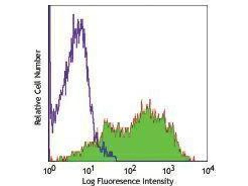 CD69 is a 27-33 kD type II transmembrane protein also known as activation inducer molecule (AIM), very early activation antigen (VEA), and MLR3. It is a member of the C-type lectin family, expressed as a disulfide-linked homodimer. Other members of this receptor family include NKG2, NKR-P1 CD94, and Ly49. CD69 is transiently expressed on activated leukocytes including T cells, thymocytes, B cells, NK cells, neutrophils, and eosinophils. CD69 is constitutively expressed by a subset of medullary mature thymocytes, platelets, mantle B cells, and certain CD4+ T cells in germinal centers of normal lymph nodes. CD69 is involved in early events of lymphocyte, monocyte, and platelet activation, and has a functional role in redirected lysis mediated by activated NK cells.