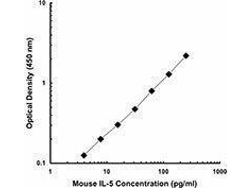- IL-5 is a homodimeric, disulphide-linked protein produced by T-cells. The native protein can have variable molecular weight as a result of glycosylation. Monomeric mouse IL-5 is a 113 amino acid protein with a reported molecular weight of 35-37 kD for the homodimeric protein. Mouse and human IL-5 are approximately 70 % identical. IL-5 has been shown to promote the growth of immature hematopoietic BFU-E progenitors and stimulates the activation, and differentiation of eosinophils, and promotes the generation of cytotoxic lymphocytes . Mouse IL-5 induces the differentiation and proliferation of pre-activated B-cells and stimulates the production and secretion of IgM and IgA by B-cells stimulated with bacterial endotoxin. The TRFK4 antibody reacts with mouse interleukin-5 (IL-5). The TRFK4 antibody can neutralize the bioactivity of natural or recombinant IL-5.