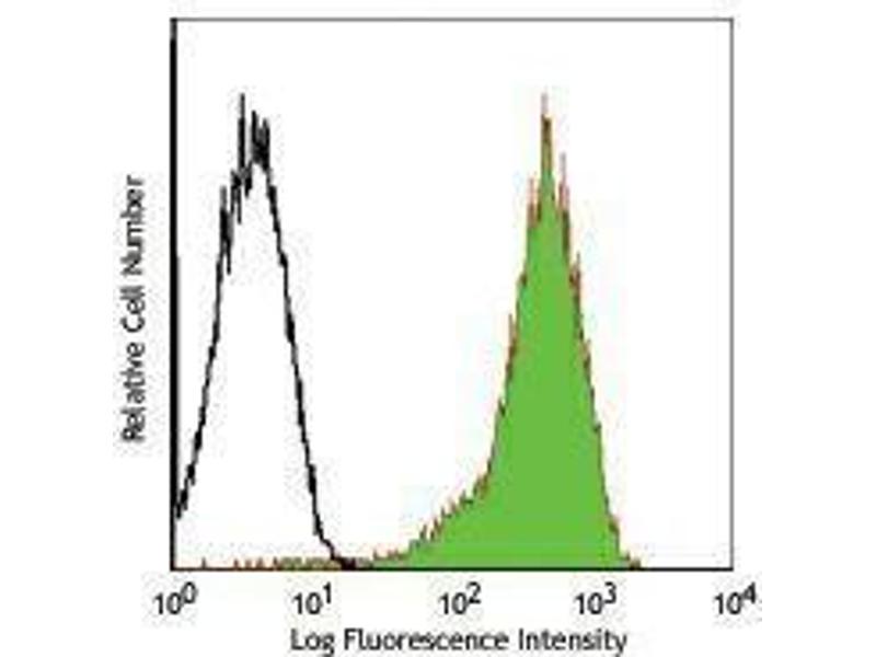CD69 is a 27-33 kD type II transmembrane protein also known as activation inducer molecule (AIM), very early activation antigen (VEA), and MLR3. It is a member of the C-type lectin family, expressed as a disulfide-linked homodimer. Other members of this receptor family include NKG2, NKR-P1 CD94, and Ly49. CD69 is transiently expressed on activated leukocytes including T cells, thymocytes, B cells, NK cells, neutrophils, and eosinophils. CD69 is constitutively expressed by a subset of medullary mature thymocytes, platelets, mantle B cells, and certain CD4+ T cells in germinal centers of normal lymph nodes. CD69 is involved in early events of lymphocyte, monocyte, and platelet activation, and has a functional role in redirected lysis mediated by activated NK cells.