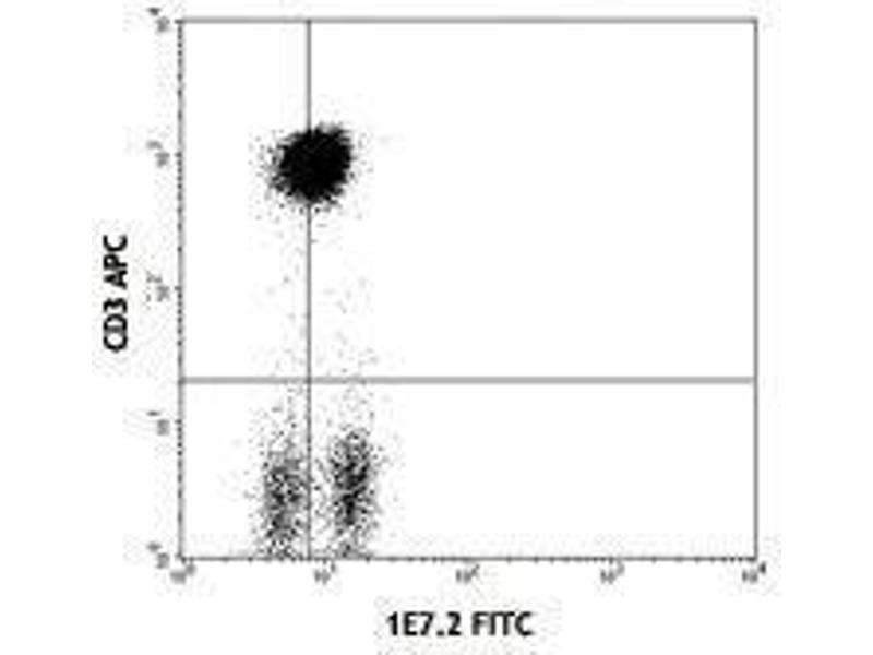 ZAP-70 is a 70 kD protein tyrosine kinase associated with the zeta chain of the T cell receptor. It is expressed in T cells and NK cells and has been shown to be involved in T cell signaling. Defects in ZAP-70 have been linked to selective T cell defects. The ZAP-70 kinase undergoes multiple phosphorylation events after T cell receptor engagement and interacts with a number of proteins involved in signal transduction. Recently, ZAP-70 has been identified as an important prognostic marker in B-cell chronic lymphocytic leukemia (B-CLL). The 1E7.2 monoclonal antibody recognizes human and mouse ZAP-70 and has been shown to be useful for flow cytometry, Western blotting, and immunoprecipitation.