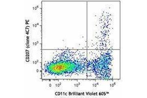 CD207, also known as langerin, is a 40 kD single-pass type II transmembrane protein, member of the C-type lectin family. CD207 is expressed on the cell surface and Birbeck granules (BGs) of Langerhans cells, and subsets of thymic and splenic dendritic cells. Its ligands are mannose, n-acetylglucosamine, fucose, and sulfated glycans. Langerin is involved in the antigen processing pathway through capture and internalization of its ligands.