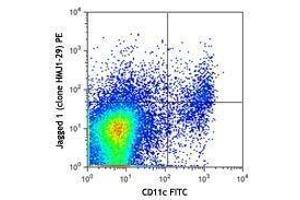 CD339, also known as Jagged 1, is a 135 kD type 1 transmembrane protein, with one DSL (Delta, Serrate, LagZ) domain, fifteen EGF-like domains, and one cysteine-rich region. Jagged 1 is expressed by many cell types including macrophages, subsets of dendritic cells, astrocytes, stromal, and epithelial cells. CD339 regulates cell fate decisions in various tissues, and has an important role in neurogenesis and development of the cardiovascular system. Studies suggest Jagged 1 is involved in Th2 polarization and Treg induction.