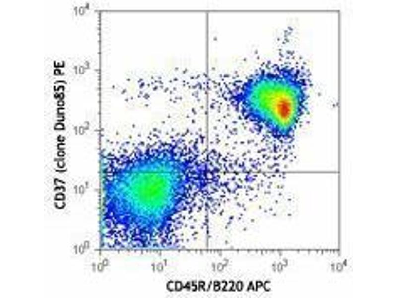 CD37, also known as Tspan26 is a 40-60 kD member of the tetraspanin (TM4SF) family, with two extracellular regions and both termini in the cytoplasm. CD37 is highly expressed on mature B cells and is also expressed on T cells, monocytes, macrophages, and neutrophils, and dendritic cells to a lesser extent. CD37 forms complexes in the cell membrane with CD53, CD81, CD82, MHC class II and dectin 1. CD37 is essential for B cell survival, regulates T cell proliferation, IgA production, and is involved in dendritic cell migration. CD37 has been described as a promising target in the treatment of B cell malignancies.
