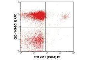 - Vα11 T cell receptor (TCR Vα11) is a variant of TCR α chain and, along with TCR β chain, forms the TCR heterodimer. In association with the CD3 complex, TCR α/β is responsible for antigen recognition through the interaction with MHC-peptide complex to initiate the T cell-mediated immune responses. The RR8-1 antibody is specific for b and d haplotypes of TCR Vα11.1 and Vα11.2, but not for Vα11.3. It does not react with a and c haplotypes of TCR Vα11.