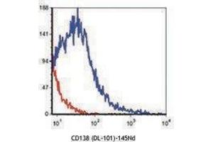 CD138, a member of the syndecan protein family, is a type I integral membrane heparin sulfate proteoglycan also known as Syndecan-1. Syndecan-1 participates in cell proliferation, cell migration, and cell-matrix adhesion via interaction with collagen, fibronectin, and other soluble molecules (such as FGF-basic). It is expressed on normal and malignant human plasma cells, pre-B cells, epithelial cells, and endothelial cells.