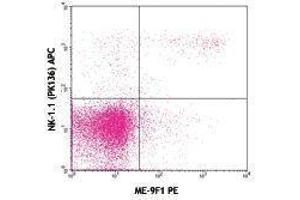 CD146, also known as melanoma cell adhesion molecule (MCAM or Mel-CAM), MUC18, S-Endo1, and A32 antigen, is an integral membrane glycoprotein that belongs to the Ig superfamily. CD146 is strongly expressed by murine vascular endothelial cells. It is expressed on about 30 % of neutrophils and 60 % of NK cells. Unlike in humans, CD146 is undetectable on monocytes, dendritic cells, T cells, NKT cells, B cells, or smooth muscle cells in mouse. It has been reported that an increase in CD146 expression is associated with NK cell maturation. Combined with using CD27 and CD11b staining, CD146 may be an alternative marker to detect final stages of NK cell maturation and define NK cell subsets. CD146+ NK cells were found to be less cytotoxic and to produce less IFN γ than CD146- NK cells upon stimulation with target cells or activating antibodies. The role of CD146 on NK cell migration has yet to be investigated. The identification of CD146 ligand(s) will be crucial to address this issue.