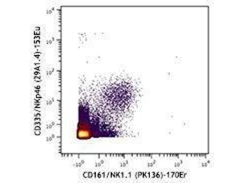 CD335, also known as NKp46, is a single-pass type I membrane protein of 46 kD. It belongs to the natural cytotoxicity receptor (NCR) family and contains two Ig-like (immunoglobulin-like) domains. It's expression is restricted to NK cells and a subset of NK-like T cells, it's not expressed in CD1d-restricted NKT cells. CD335 is a receptor for viral hemagglutinins and heparan sulfate proteoglycans and is involved in NK cell activation.