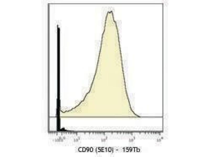 CD90 is a 25-35 kD GPI-anchored protein, also known as Thy-1. It belongs to Ig superfamily. Human CD90 is expressed on neuronal cells, a subset of CD34+ cells, a subset of fetal liver cells and fetal thymocytes, fibroblasts, activated endothelial cells, and some leukemia cell lines. CD34+CD90+ cells are primitive hematopoietic stem cells. It has been reported that Thy-1 binds with β2 and β3 integrins and plays bimodal roles in the regulation of cell adhesion and neurite outgrowth, and inhibits hematopoietic stem cells proliferation and differentiation.