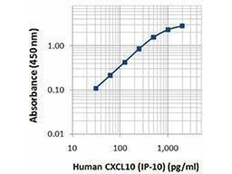 CXCL10 is an ELR-negative chemokine structurally and functionally related to CXCL9 and CXCL11. CXCL10, CXCL9, and CXCL11 are produced and secreted by monocytes, macrophages, fibroblasts, and epithelial cells upon stimulation with proinflammatory cytokines, especially IFNγ. CXCL10 chemoattracts CD4, CD8, and NK and NKT cells through the binding to its receptor CXCR3, which is shared with CXCL9 and CXCL11. In addition, CXCL10 inhibits neovascularization in tumors and in wound healing in vivo. Also, CXCL10 has anti-proliferative effects on endothelial cells in vitro, and angiostatic and antitumor effects in vivo. It has been suggested that the anti-proliferative effect of CXCL10 in endothelial cells is CXCR3-independent and that it is mediated through GAG interaction. CXCL10 also possesses antimicrobial activity against E. coli and L. monocytogenes, and both the spore and bacillus forms of B. anthracis. CXCL10 expression is strongly upregulated in many human inflammatory diseases, including rheumatoid arthritis, type I diabetes, multiple sclerosis, atherosclerosis, allograft rejection, and others.