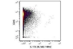 - IL-17A is the founding member of the IL-17 family, a group of six structurally related pro-inflammatory cytokines. IL-17A, secreted by activated CD4+ Th17 cell subpopulation, elicits multiple biological activities on a variety of cells including: the induction of IL-6, IL-8, G-CSF, and PGE2 production in epithelial, endothelial or fibroblasts, the enhancement of surface expression of ICAM-1 in fibroblasts, activation of NF-κB and costimulation of T cell proliferation. Recent studies demonstrated that, in mice, activated IL-17-secreting CD4+ helper T cells (Th17 cells) mediate an autoimmune arthritis that clinically and immunologically resembles rheumatoid arthritis (RA). Human IL-17A shows 63 % , 63 %, and 72 % amino acid sequence identity to rat IL-17A, mouse IL-17A, and a protein encoded by the ORF13 gene of herpesvirus Saimiri (HVS), respectively.