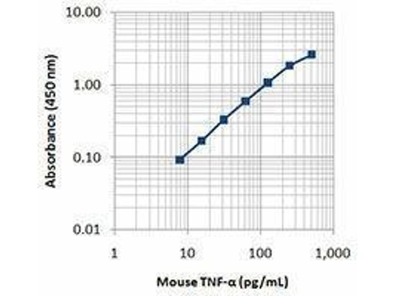 - TNF-α is secreted by macrophages, monocytes, neutrophils, T-cells (principally CD4+), and NK-cells. Many transformed cell lines also secrete TNF-α. Monomeric mouse TNF-α is 156 amino acid protein (N-glycosylated) with a reported molecular weight of 17.5 kD protein. TNF-α forms multimeric complexes, stable trimers are most common in solution. A 26 kD membrane form of TNF-α has also been described. TNF-α binding to surface receptors elicits a wide array of biologic activities including: cytolysis and cytostasis of many tumor cell lines in vitro, hemorraghic necrosis of tumors in vivo, increased fibroblast proliferation, and enhanced chemotaxis and phagocytosis in neutrophils. The TN3-19.12 antibody reacts with mouse, rat, and rabbit tumor-necrosis factor-α (TNF-α) proteins. The TN3-19.12 antibody can neutralize the bioactivity of natural or recombinant TNF-α.