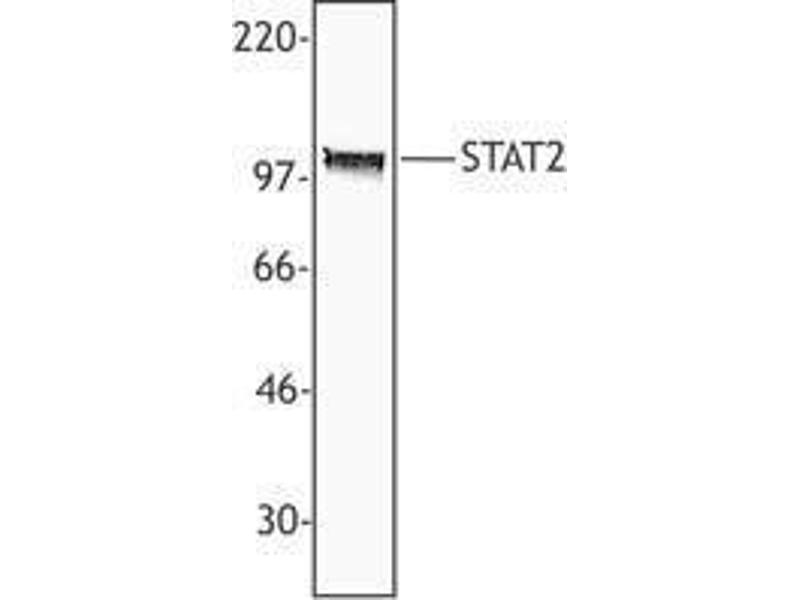STAT2, a 113 kD member of the STAT (signal transducer and activators of transcription) protein family, is phosphorylated in response to interferon alpha receptor signaling by Janus kinase I. Phosphorylation of STAT 2 induces nuclear translocation to activate transcription. STAT2 is highly expressed in the skin and thymus. STAT 2 forms complex with STAT1 and p48 to activate transcription and does not bind DNA directly. STAT 3 interacts with interferon regulatory factor 9, interferon alpha receptor, STAT 1, p48, and CREB binding protein. The Poly6245 antibody recognizes the C-terminal region of human STAT2 and has been shown to be useful for Western blotting, immunoprecipitation, and immunohistochemistry.