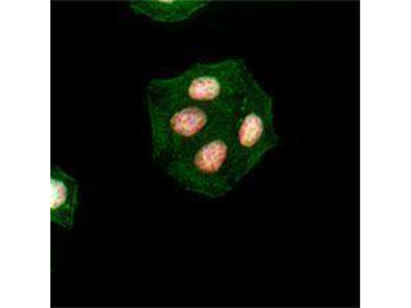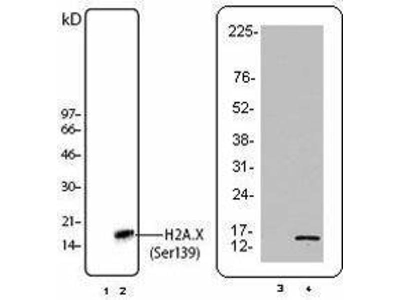 H2A.X is a 14 kD basal histone and a member of the H2 histone family. This nuclear protein is synthesized in the G1 and S phase of the cell cycle and is known to be important for recombination between immunoglobulin switch regions. H2A.X becomes phosphorylated on serine 139 after double-stranded DNA breaks. Phosphorylated H2A.X promotes DNA repair and maintains genomic stability. The 2F3 monoclonal antibody reacts with phosphorylated human H2A.X (Ser139) and has been shown to be useful for Western blotting and immunofluorescence.
