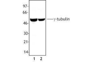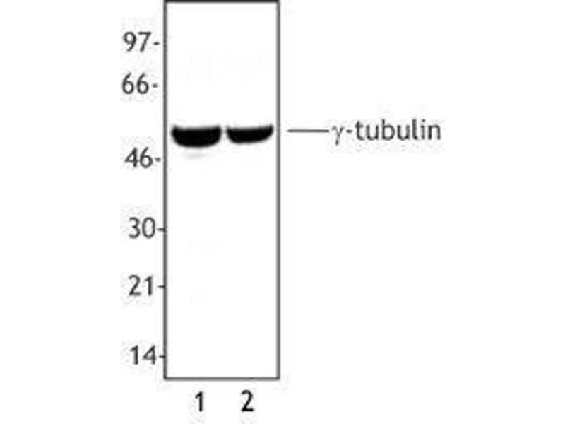 - γ-tubulin is a 51 kD member of the tubulin superfamily and is conserved between yeast and mammals. This cytoskeletal protein is highly expressed in centrosomes and is thought to be involved in cytoskeletal organization and mitosis. γ-tubulin is expressed at highest levels during prophase to metaphase and can be modified by phosphorylation. This protein has been shown to interact with α-tubulin, paxillin, and RAC GTPase activated protein 1. The Poly6209 antibody has been shown to be useful for Western blotting of human and mouse γ-tubulin.