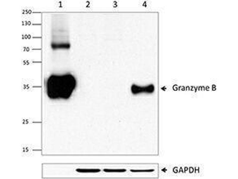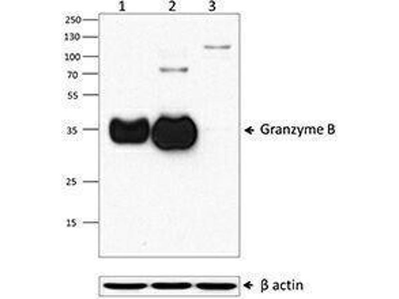 - Granzyme B is a serine protease that is produced mainly by cytotoxic T cells (CTL) and natural killer (NK) cells. It plays an important role in cytotoxic lymphocyte-mediated apoptosis, chronic inflammation, and impaired wound healing. Granzyme B is packaged in cytoplasmic granules that are exocytosed towards a bound target cell, which subsequently activates multiple protein substrates that induce apoptosis. Perforin facilitates the transfer of Granzyme B into the target cell. Most circulating CD56+, CD8-, NK cells, and approximately half of circulating CD8+ T cells coexpress both Granzyme A and B. The activation of CD8+ and CD4+ T lymphocytes induce substantial expression of Granzyme B, but not Granzyme A. Recently, Granzyme B has been found to be produced by other cell types such as CD34+ hematopoietic progenitor cells, keratinocytes, basophils, mast cells, plasmacytoid dendritic cells, B cells, and smooth muscle cells. Elevated levels of Granzyme B are also found in some kinds of autoimmune diseases, type 1 diabetes, and cardiovascular diseases.