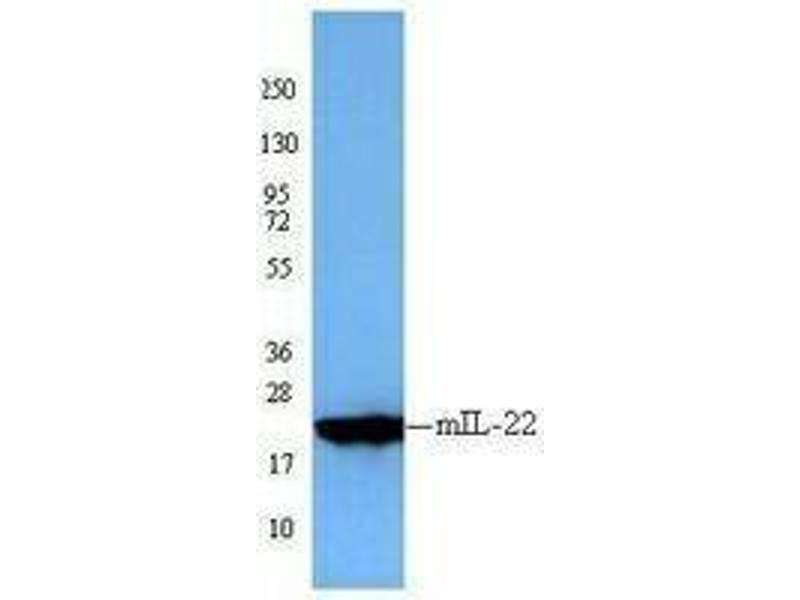 - IL-22, a cytokine structurally related to IL-10, was originally identified in the mouse as a gene induced by IL-9 in T cells and mast cells. IL-22 was initially designated as IL-TIF (IL10-related T cell-derived inducible factor). Mouse IL-TIF consists of 179 amino acids, including four cysteins, and has a predicted molecular weight of 20 kD. Biological activity of IL-22 is initiated by binding to a cell-surface complex composed of IL-22R1 and IL-10R2 receptor chains and further regulated by interactions with a soluble binding protein, IL-22BP, which shares sequence similarity with an extracellular region of IL-22R1 (sIL-22R1). Both chains of the IL-22R complex belong to the class II cytokine receptor families. Two types of IL-22-binding receptor have been discovered, a membrane-bound receptor and a soluble receptor, both encoded by different genes. IL-22 is produced by immune cells and acts on non-immune cells to regulate local tissue inflammation. As a product of the recently identified T helper 17 lineage of CD4(+) effector lymphocytes, IL-22 plays a critical role in mucosal immunity as well as in dysregulated inflammation observed in autoimmune diseases.