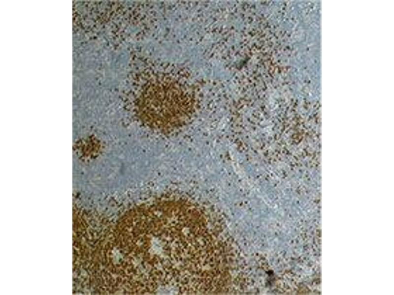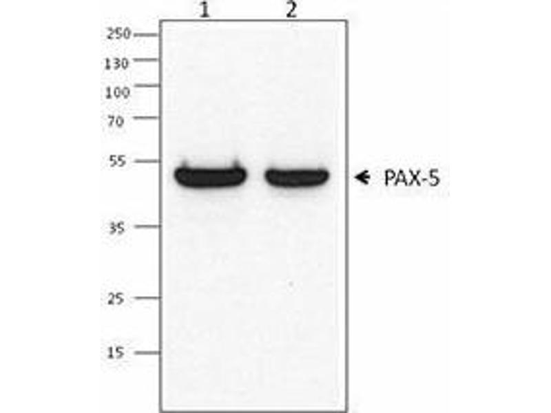 - Pax5, also known as BSAP (B cell specific activator protein), is a member of the paired box (Pax) family of transcription factors. PAX proteins are important regulators in early development, and alterations in the expression of their genes are thought to contribute to neoplastic transformation. Pax5 is the only member of the Pax family of transcription factors that is expressed in hematopoietic cells. During embryogenesis, Pax5 is transiently expressed in the brain of mice and in the mesencephalon and spinal cord of humans. Its expression is upregulated early in B cell development at the time of B cell commitment and is maintained throughout most subsequent stages. Suppression of Pax5 is essential for expression of Blimp-1 and the terminal differentiation of plasma cells. In the spleen, expression of Pax5 is higher in marginal zone B cells (B220+ CD21high CD23low) than in other B cells, especially the transition 1 stage (B220+ CD21- CD23-). In addition to its role in B cell development, Pax5 also affects VH-DJH heavy chain recombination as well as influencing the expression of many other B and non-B cell related proteins. Its expression has also been detected in developing CNS and testis and so the encoded protein may also play a role in neural development and spermatogenesis. This gene is located at 9p13, which is involved in t(9,14)(p13,q32) translocations recurring in small lymphocytic lymphomas of the plasmacytoid subtype, and in derived large-cell lymphomas. This translocation brings the potent E-mu enhancer of the IgH gene into close proximity of the PAX5 promoter, suggesting that the deregulation of transcription of this gene contributes to the pathogenesis of these lymphomas. Alternatively spliced transcript variants encoding different isoforms have been described but their biological validity has not been determined.