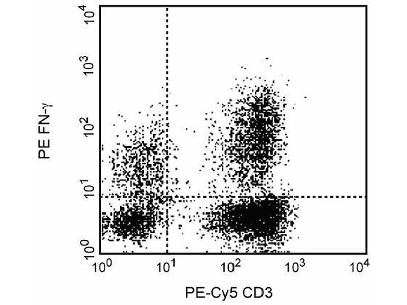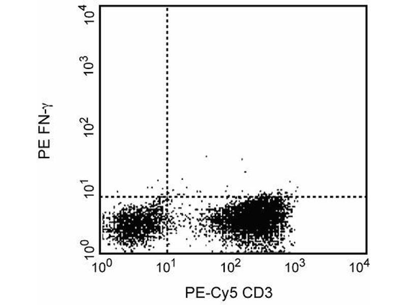 The purified 4S.B3 antibody (ABIN967468) can be used as a blocking control to demonstrate specificity of IFN-gamma staining by directly conjugated clone 4S.B3. To perform this control, the fixed/permeabilized cells (~1 million) can be incubated with 1-10 µg of purified 4S.B3 antibody (ABIN967468) for 20 minutes at 4°C, prior to staining with the directly conjugated antibody (e.g., 0.1 -0.5 µg mAb/1 million cells) (right panel). The intracellular cytokine staining technique and use of blocking controls are described in detail by C. Prussin and D. Metcalfe.